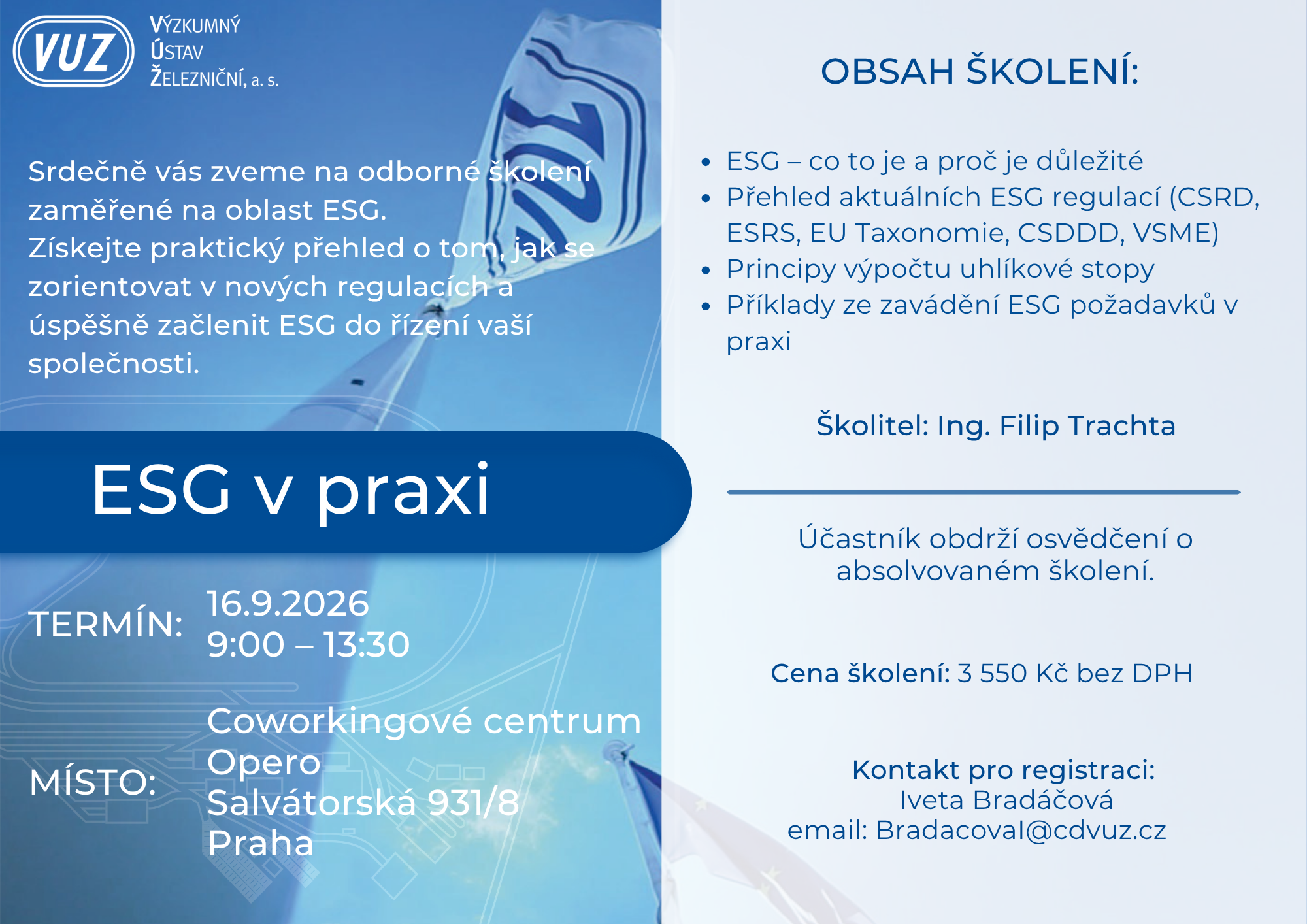 Seminář je určen pro všechny, kteří se chtějí zorientovat v oblasti ESG a připravit se na nové požadavky vyplývající z evropské legislativy, zejména CSRD a ESRS.