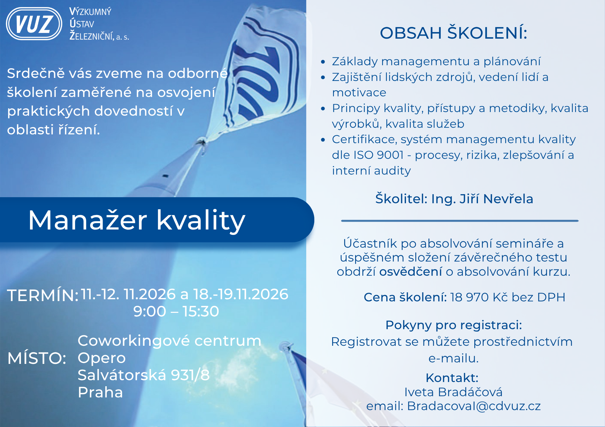 Registrací vyjadřujete souhlas společnosti Výzkumný Ústav Železniční, a.s. se zpracováním osobních údajů ve smyslu zákona č. zákon č. 110/2019 Sb., o zpracování osobních údajů, ve znění pozdějších předpisů, se zasíláním informací a pořizováním a zveřejněním audiovizuálních záznamů zejména pro marketingové účely VUZ.